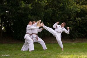 Beim Sommer-Intensiv-Seminar wurden verschiedene Thematiken wie Technikschulung, Kombinationen, Formenlaufen, Partnerübungen, Freikampf, Sprungtechniken, Selbstverteidigung, Bruchtest und natürlich Theorie geübt. Neben dem intensiven Training kamen viel Spaß und Gespräche über die Kampfkunst hinzu. Das Training konnte bei schönem Wetter am Badesee Großsander stattfinden, sodass das anschließende Baden eine willkommene Abkühlung bot.